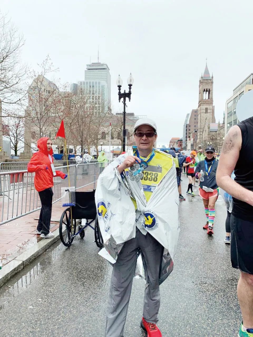 圖:醫(yī)藥天團成員雨中奔跑在最后一棒