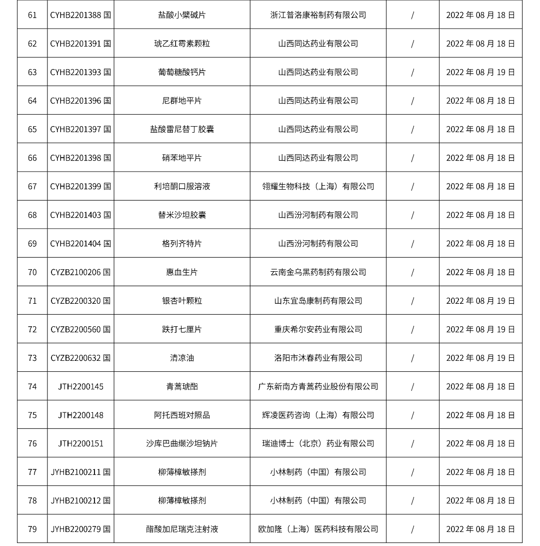 2022年08月22日中藥品種保護(hù)受理公示