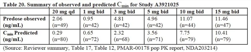 ·多劑量研究中(連續(xù)服用5天),托法替布緩釋片11mg(qd)與托法替布片5mg(bid),開展BE試驗。