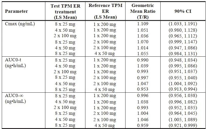·托吡酯緩釋膠囊將每個時間段的藥動學參數(shù)與片劑進行比較,證明兩種制劑的差異較小。實現(xiàn)豁免驗證性臨床。