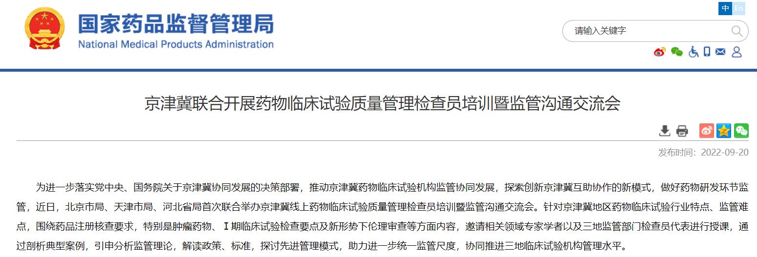 京津冀聯(lián)合開展藥物臨床試驗(yàn)質(zhì)量管理檢查員培訓(xùn)暨監(jiān)管溝通交流會(huì)