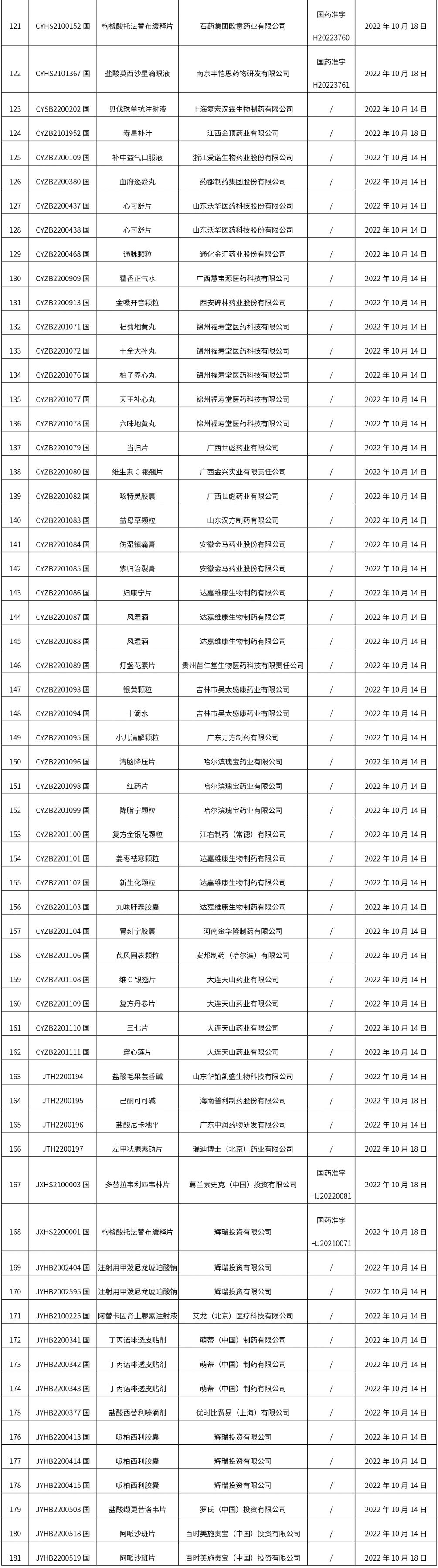 1. 本周(截止10.21中午12:15)共發(fā)布了181個品規(guī)的藥品批準(zhǔn)證明文件待領(lǐng)取信息,其中一致性評價16個,注射劑57個。