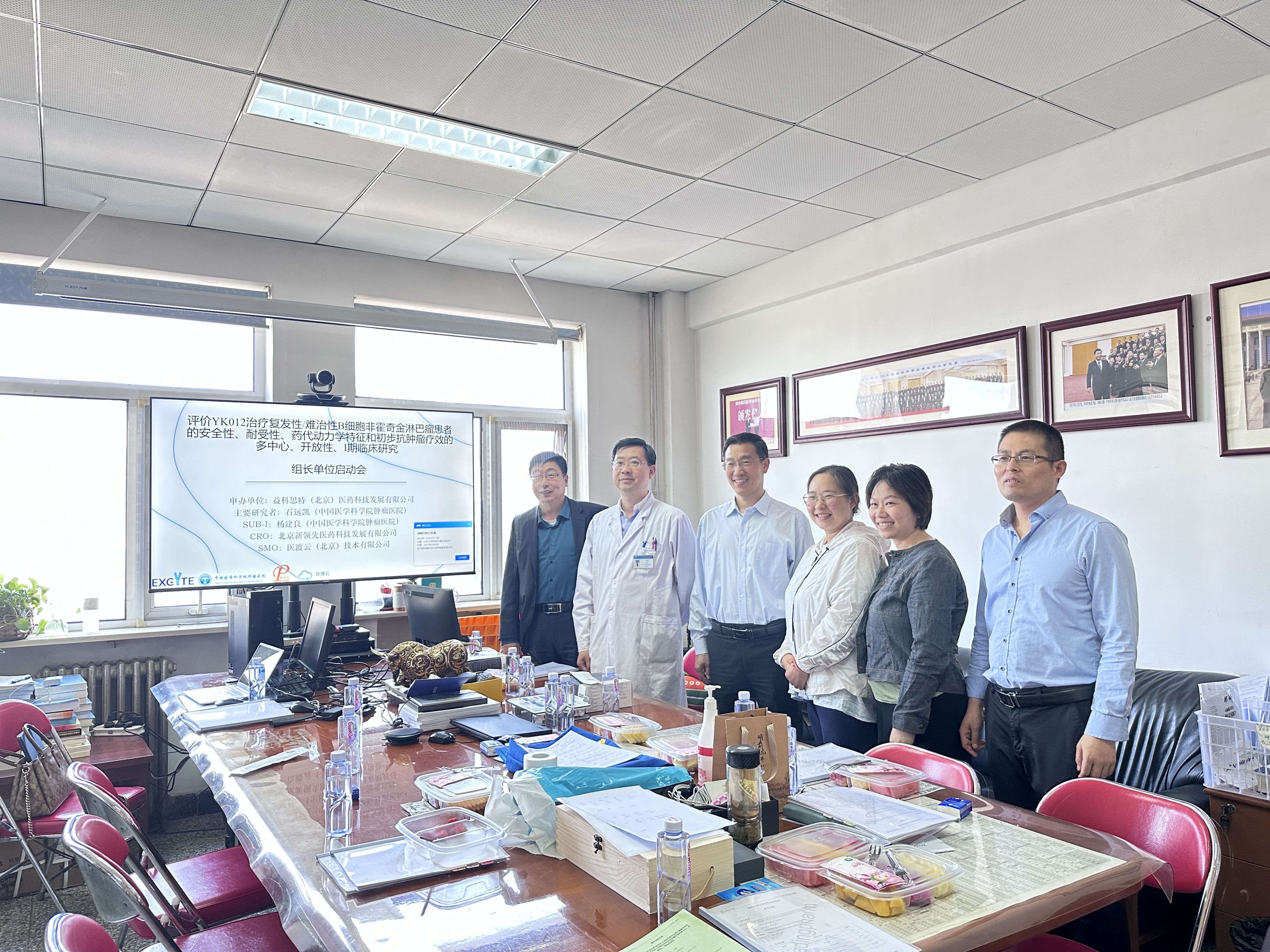▲ 中國醫(yī)學科學院腫瘤醫(yī)院臨床研究中心副院長、腫瘤內(nèi)科主任石遠凱教授(左2),益科思特(北京)醫(yī)藥科技發(fā)展有限公司聯(lián)合創(chuàng)始人孟慶武先生(左1)和聯(lián)合創(chuàng)始人袁清安博士(左3),北京新領(lǐng)先醫(yī)藥臨床事業(yè)部運營總監(jiān)潘麗怡女士(左4),申辦方臨床副總監(jiān)任沖(右3)及CRO方醫(yī)學總監(jiān)袁少雄女士(右4))團隊代表等啟動會現(xiàn)場合影