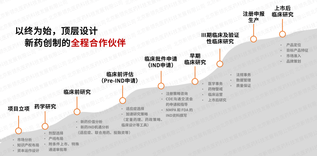 依托于新領(lǐng)先CXO服務(wù)體系,創(chuàng)建了“交互式”臨床服務(wù)模式,在項目立項階段全面介入,做新藥創(chuàng)制的全程合作伙伴,整合醫(yī)學(xué)、藥政、藥學(xué)研發(fā)等技術(shù)專家進行頂層設(shè)計,最大限度降低項目研發(fā)風險。同時,成立專項政府引導(dǎo)基金,為創(chuàng)新項目提供不同階段的投融資,最大程度加速藥品上市進程。此外,強大的定量藥理學(xué)及體內(nèi)外橋接團隊針對特定疾病和特定人群進行數(shù)字模型研究,制定科學(xué)高質(zhì)的臨床研究方案,提高新藥臨床開發(fā)效率。