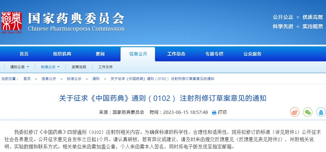 政策法規(guī) || 《中國藥典》通則(0102) 注射劑修訂草案意見(附本周法規(guī)概覽06.12-06.16))