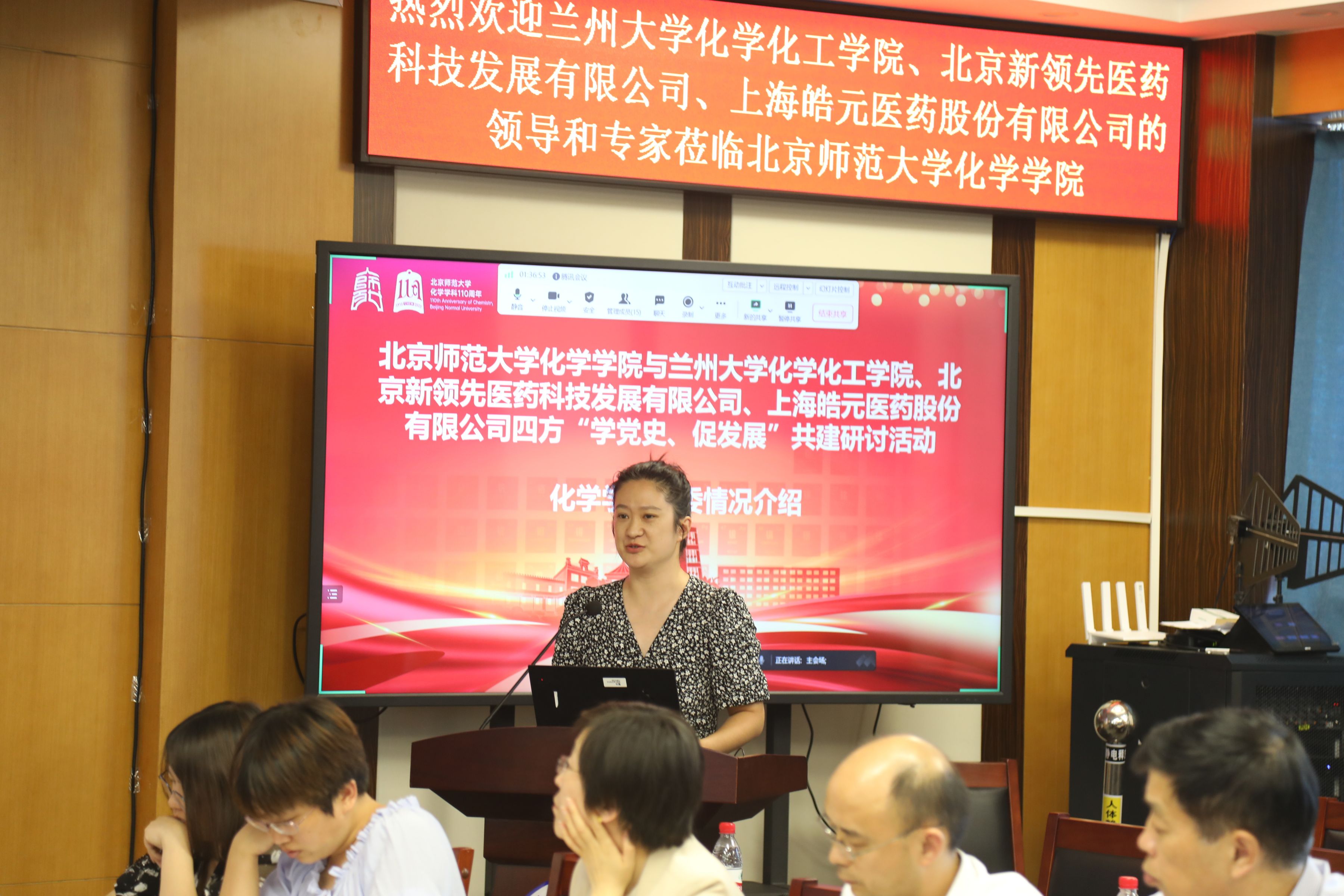 ▲ 新領(lǐng)先醫(yī)藥黨總支副書記、固體制劑事業(yè)部總經(jīng)理鞠平女士,蘭州大學化學化工學院丁三元教授,北師大化學學院黨委辦公室主任、團委書記徐娜女士分別作黨建工作匯報