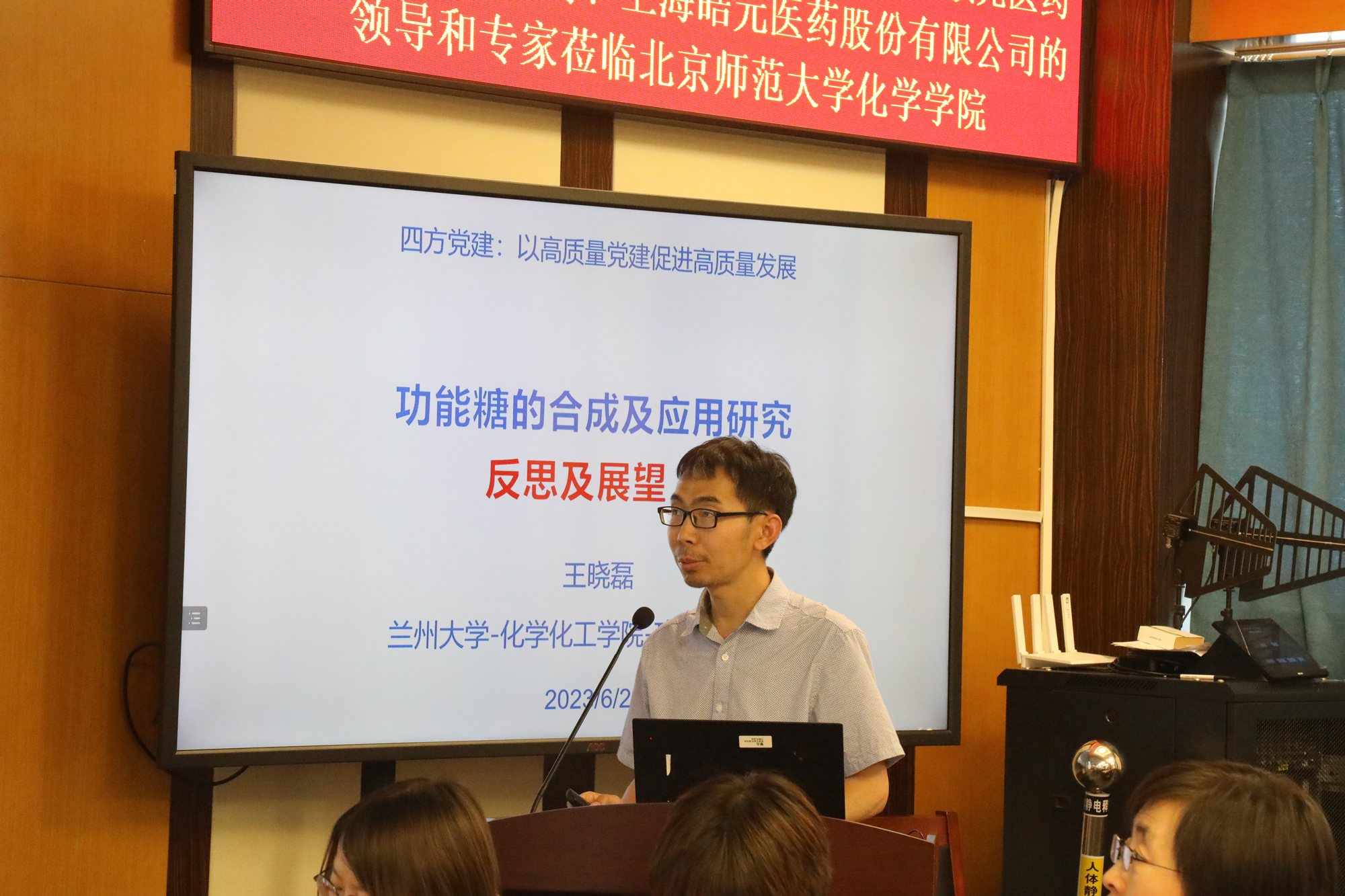 蘭州大學化學化工學院王曉磊教授、曾會應教授分別作《功能糖合成及應用研究》、《去芳香化-重新芳香化策略應用》主題分享,針對最新的研究進展與成果與在場專家領(lǐng)導進行分享;上海皓元醫(yī)藥產(chǎn)品負責人、樂研首席科學家陳委先生作《高??蒲谐晒诠酒脚_轉(zhuǎn)化的案例報告》分享,針對實際案例對公司科研成果轉(zhuǎn)化項目進行詳細介紹,為后續(xù)的產(chǎn)學研合作奠定基礎(chǔ);北京師范大學化學學院黨委書記盧忠林教授、江迎教授分別作《藥物遞送載體的合成及性能研究》、《腦化學原位測量方法與應用基礎(chǔ)研究》報告分享,各方切實做到資源共享,優(yōu)勢互補。各方通過課題的深入學習和交流,組建高校-企業(yè)創(chuàng)新聯(lián)合體,通過產(chǎn)學研深度合作,推動開展關(guān)鍵核心技術(shù)、基礎(chǔ)前沿技術(shù)攻關(guān),努力實現(xiàn)重點領(lǐng)域、關(guān)鍵環(huán)節(jié)自主可控的國家戰(zhàn)略部署。