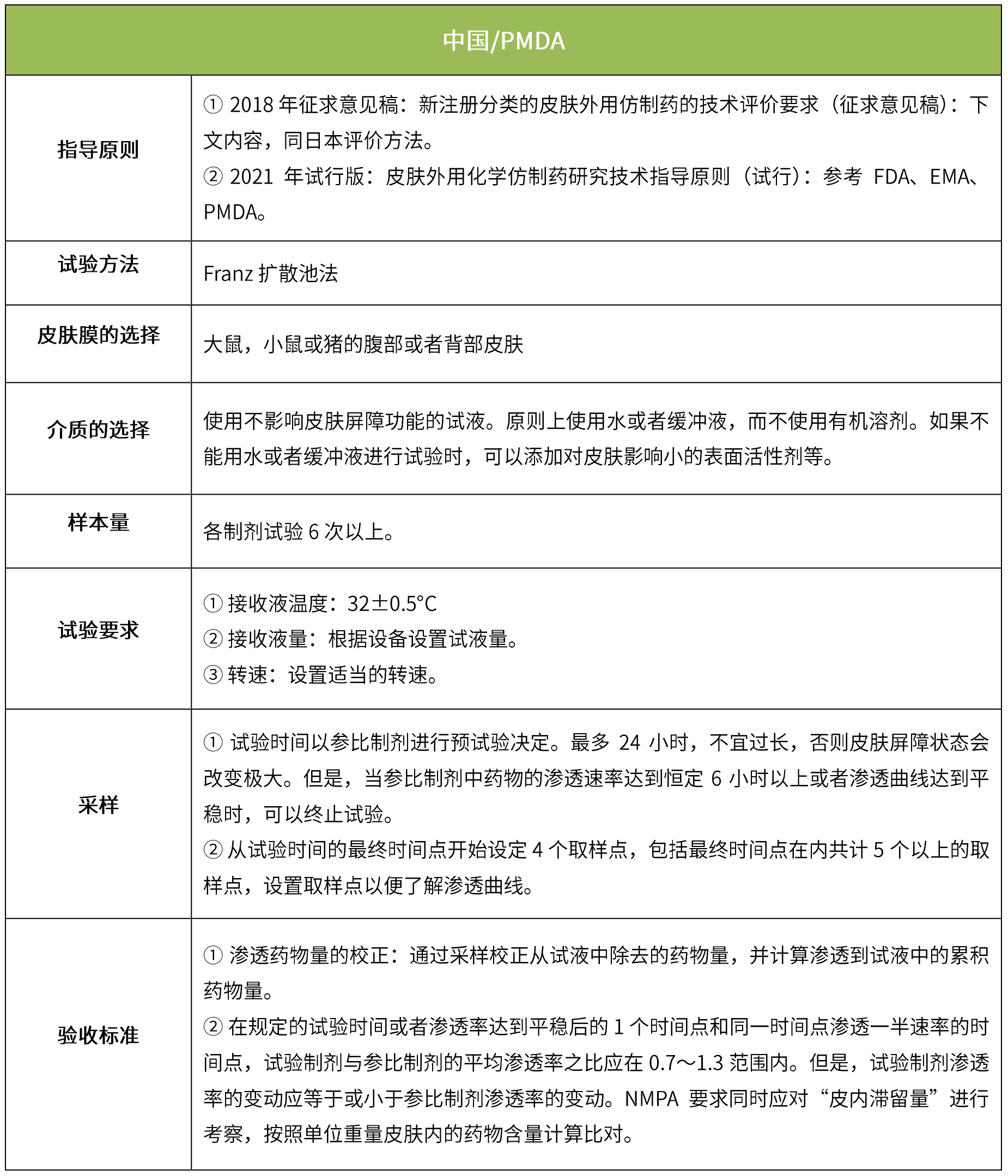 體外透皮試驗(yàn)的設(shè)計(jì)目的是模擬外用藥物在生理?xiàng)l件下的透皮過(guò)程,以反映外用制劑的質(zhì)量;是采用特定的研究方法,動(dòng)態(tài)地測(cè)量皮膚給藥后一定時(shí)間內(nèi)藥物透過(guò)皮膚的速度和藥物的量,以測(cè)定藥物透過(guò)皮膚的真實(shí)生理效果。(NMPA:《皮膚外用化學(xué)仿制藥研究技術(shù)指導(dǎo)原則(試行)》、《新注冊(cè)分類的皮膚外用仿制藥的技術(shù)評(píng)價(jià)要求(征求意見(jiàn)稿)》)。