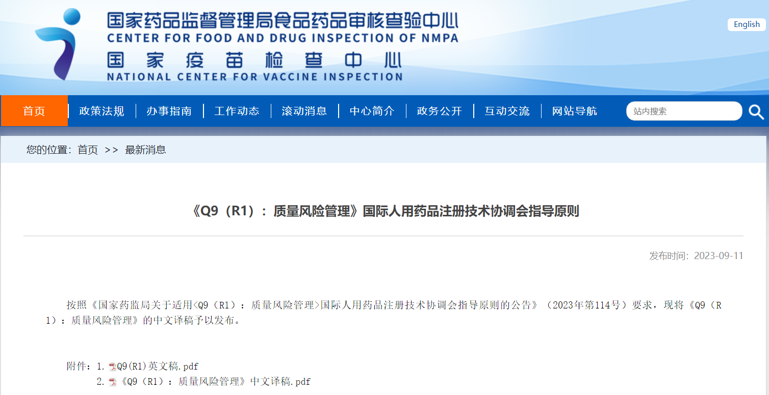 《Q9(R1):質(zhì)量風(fēng)險(xiǎn)管理》國際人用藥品注冊技術(shù)協(xié)調(diào)會指導(dǎo)原則