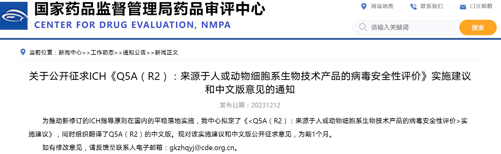 關(guān)于公開征求ICH《Q5A(R2):來源于人或動物細(xì)胞系生物技術(shù)產(chǎn)品的病毒安全性評價(jià)》實(shí)施建議和中文版意見的通知
