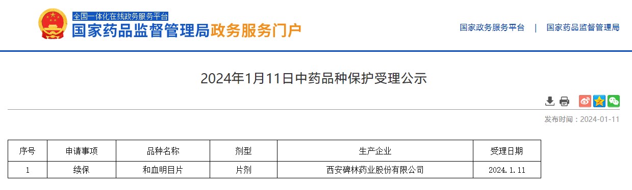 2024年1月11日中藥品種保護(hù)受理公示