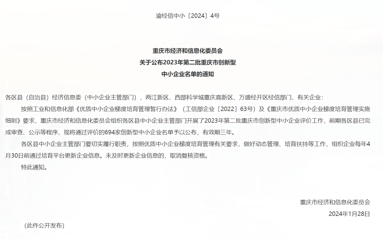 開工大吉 | 新領(lǐng)先(重慶)醫(yī)藥榮獲“重慶市創(chuàng)新型中小企業(yè)”稱號(hào)