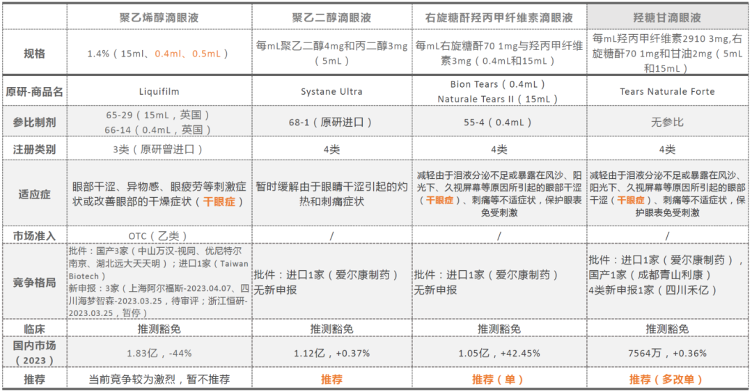建議開發(fā)單劑量裝0.03%滴眼液、改善安全性的0.01%滴眼液、醫(yī)美涂劑,持續(xù)關(guān)注植入劑進(jìn)口動(dòng)向和專利情況。