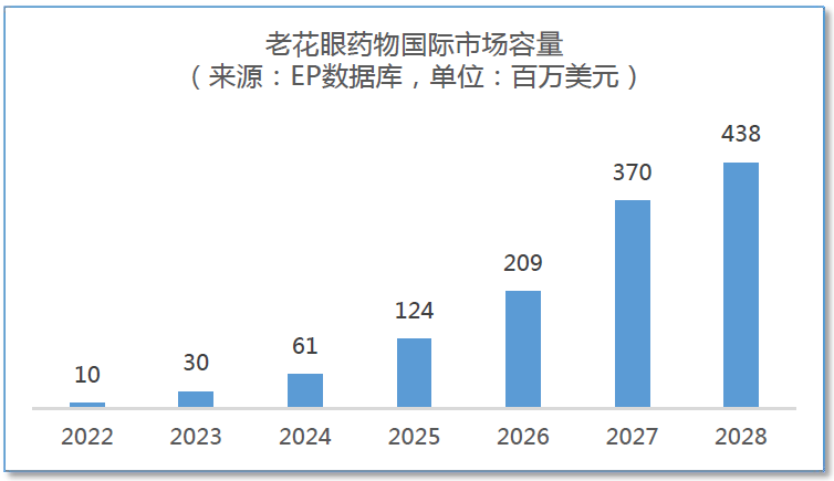 第二款上市的老花眼治療藥物,相較首個上市的老花眼治療藥物Vuity(1.25%),濃度低,效果持久,依從性好,不含防腐劑