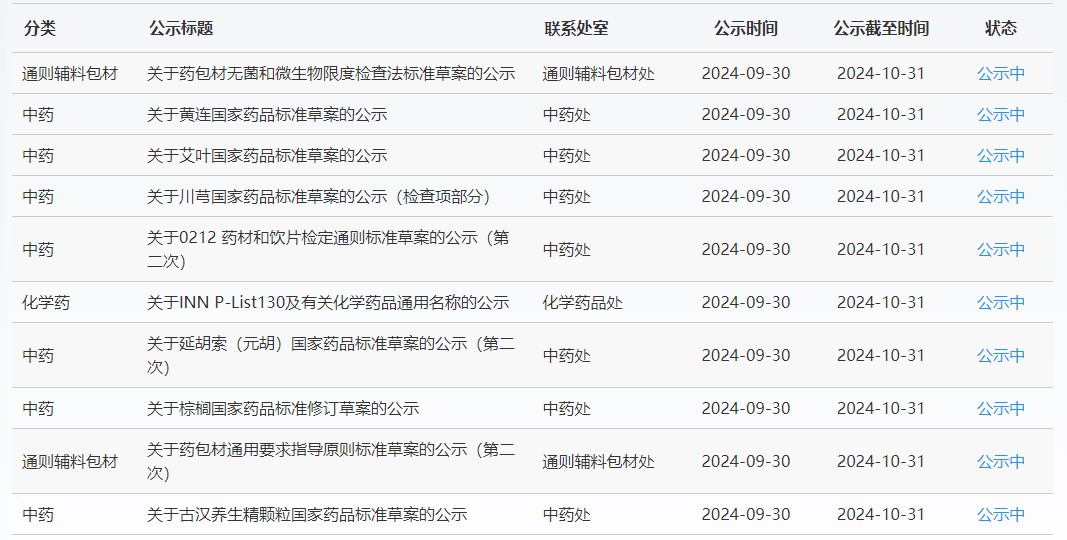 近期,藥典委發(fā)布的標(biāo)準(zhǔn)草案公示如下: