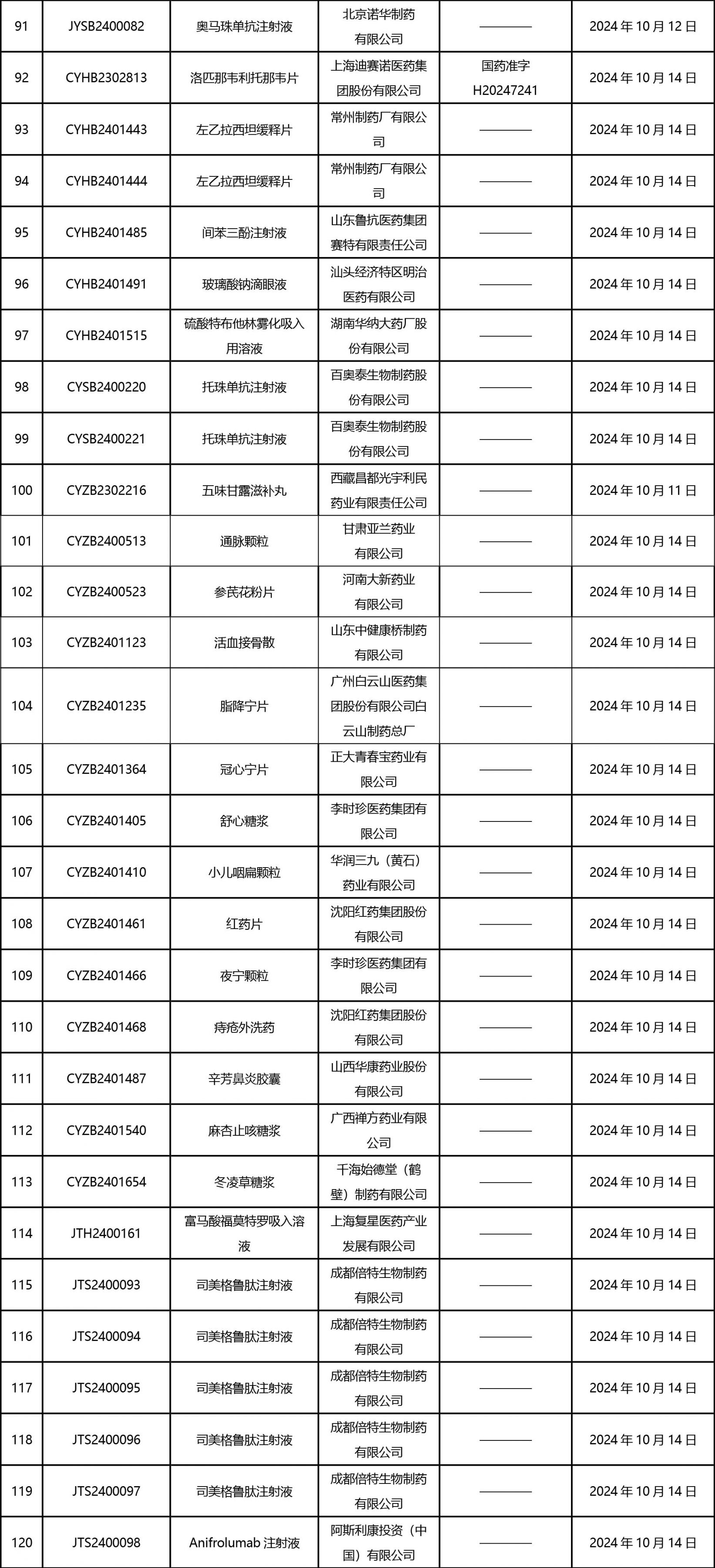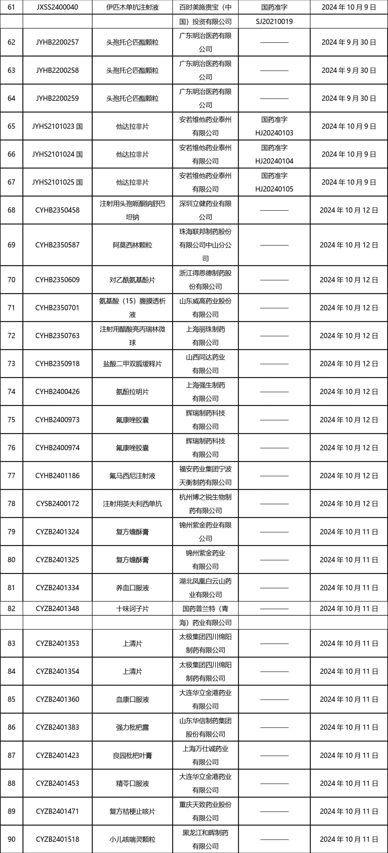 截止2024年10月18日 15:00本周發(fā)布161個待領(lǐng)取藥品批準(zhǔn)證明文件,其中注射液84個,一致性評價品種30個。