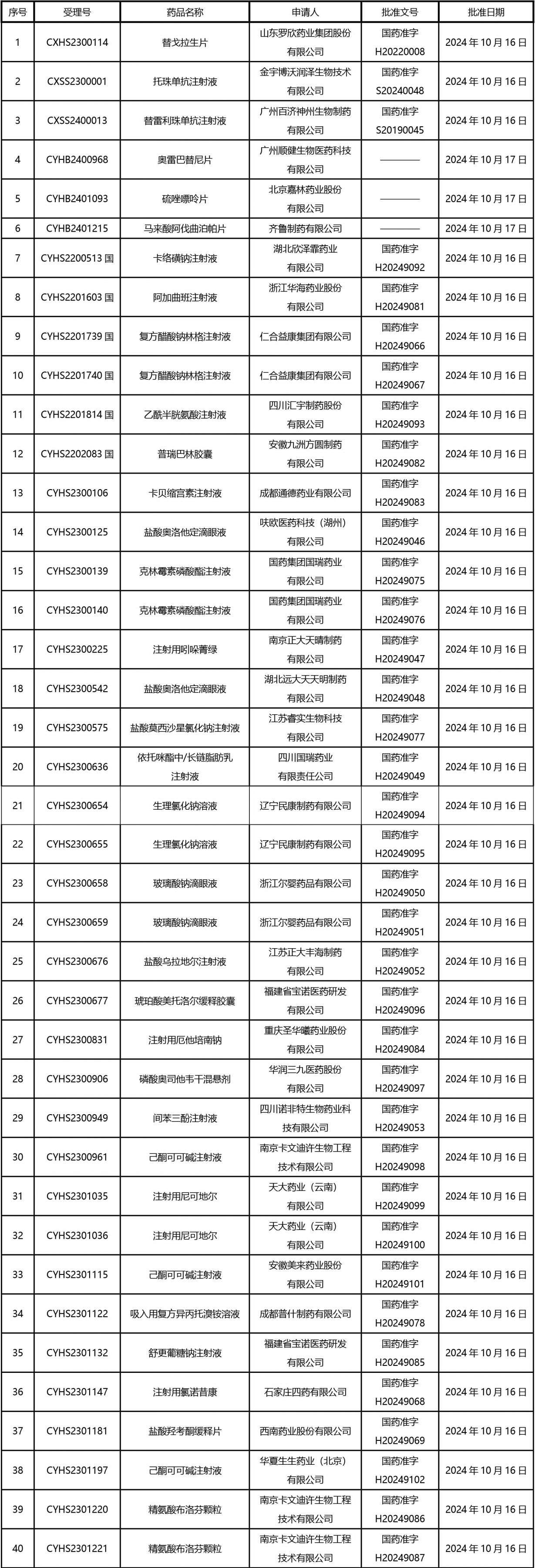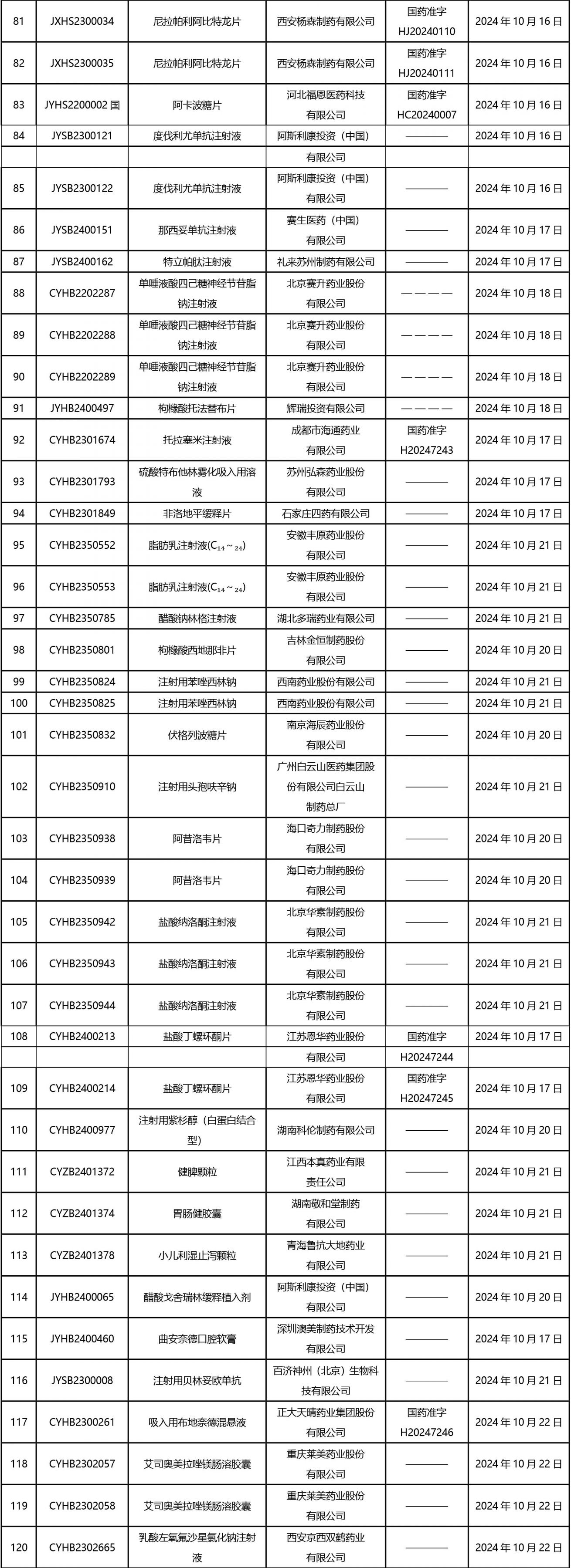 2024年10月21日至2024年11月1日 16:00發(fā)布368個(gè)待領(lǐng)取藥品批準(zhǔn)證明文件,其中注射液125個(gè),一致性評(píng)價(jià)品種45個(gè)。