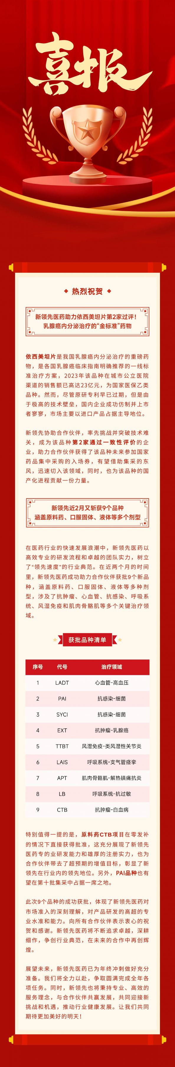 喜報 | 乳腺癌內(nèi)分泌治療“金標(biāo)準(zhǔn)”藥物第2家過評!新領(lǐng)先醫(yī)藥近期又?jǐn)孬@9個批件!