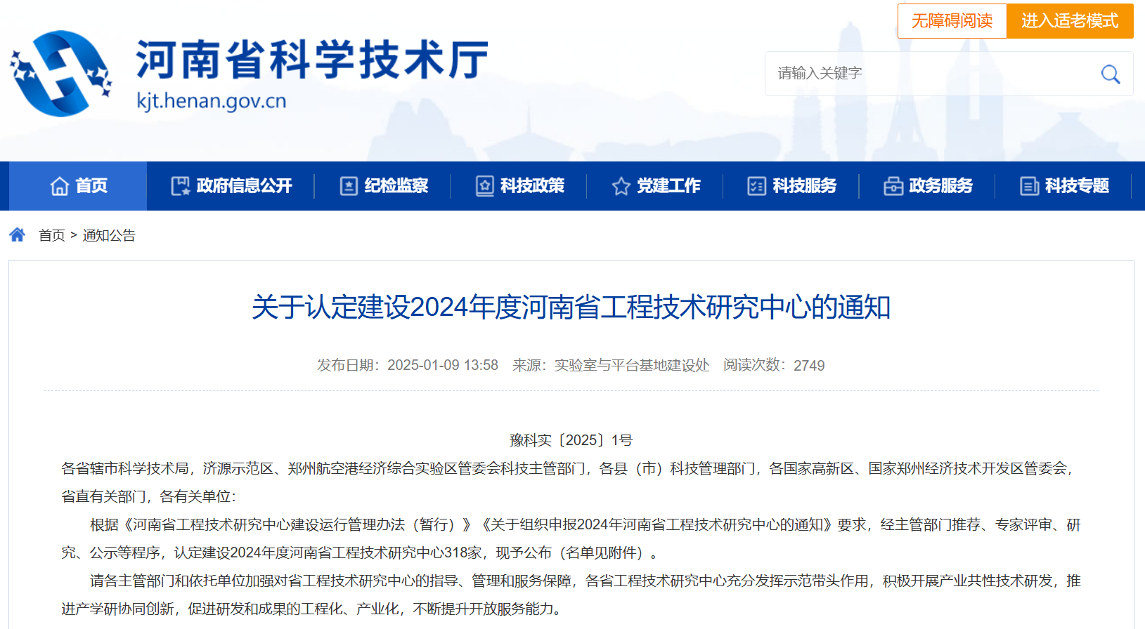 Henan Provincial Engineering Technology Research Centers are mainly built relying on institutions with strong scientific research capabilities such as technology-based enterprises, colleges and universities, and research institutes. They aim to strengthen the dominant position of Henan's enterprises in technological innovation, improve the level of industrial innovation and development, and promote the agglomeration of various innovation factors to enterprises. They are an important part of building a technological innovation system with enterprises as the main body, market orientation, and in-depth integration of industry, university, research and application. They also serve as important platforms for gathering and training high-level engineering and technical talents, conducting research on key common technologies in industries, and serving high-quality industrial development.
